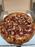 Tender grilled chicken, caramelized onions, and rich barbecue sauce atop a crispy, golden crust.